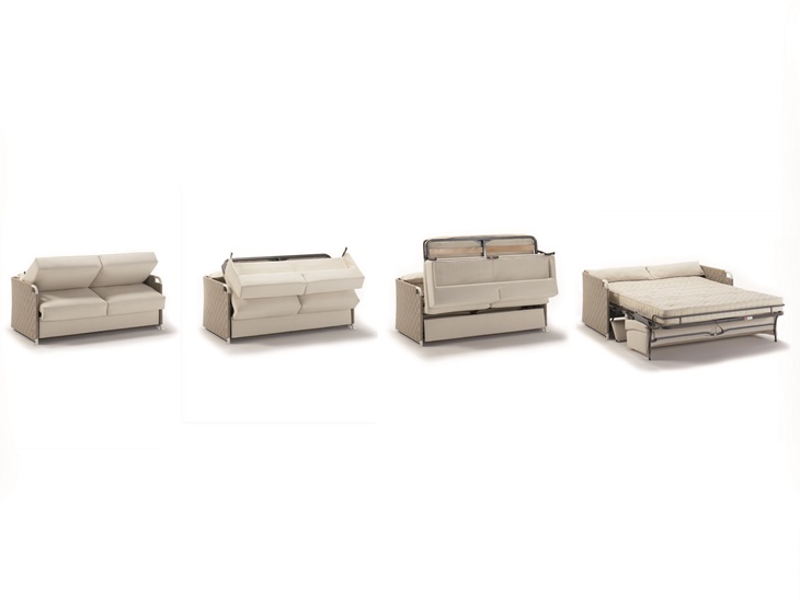 Sistema di divani e poltrone fissi o trasformabili con semplicità disegnati secondo il concetto di contenitore nel quale inserire ed estrarre i meccanismi dei letti e i cuscini dei divani.