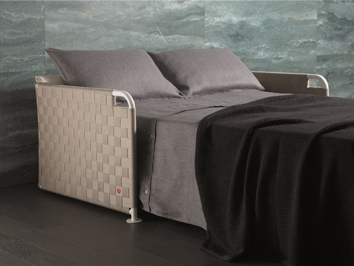 La rete del letto è a doghe di multistrato di faggio evaporato di sezione ondulata con nervaura longitudinale tipo Welle.